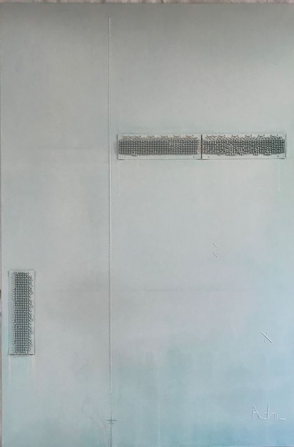 Dans cette série, je présente un travail hybride où s'entremêlent de nombreuses techniques plastiques. Un premier ensemble de treize grandes toiles ainsi qu'un second de vingt-cinq petites toiles composent la série.